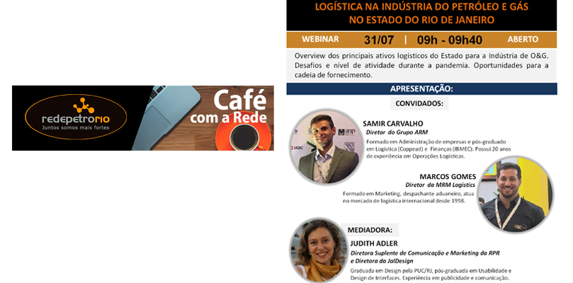 Evento RPR | CAFÉ COM A REDE | SAMIR CARVALHO (Grupo ARM) e MARCOS GOMES (MRM Logistics) | LOGÍSTICA NA INDÚSTRIA DO PETRÓLEO E GÁS NO ESTADO DO RIO DE JANEIRO – NESTA SEXTA-FEIRA, 31/07/2020 – de 09h às 09h40 – PARTICIPE!!!