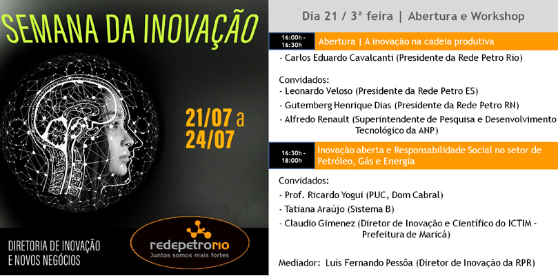 Participe da SEMANA DA INOVAÇÃO DA REDE PETRO RIO, de 21 a 24 de julho !!!