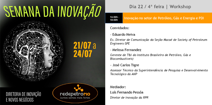 Para mais informações e inscrições acesse: http://redepetrorio.com.br/evento-semana-da-inovacao-da-rpr-de-21-a-24-de-julho-participe/